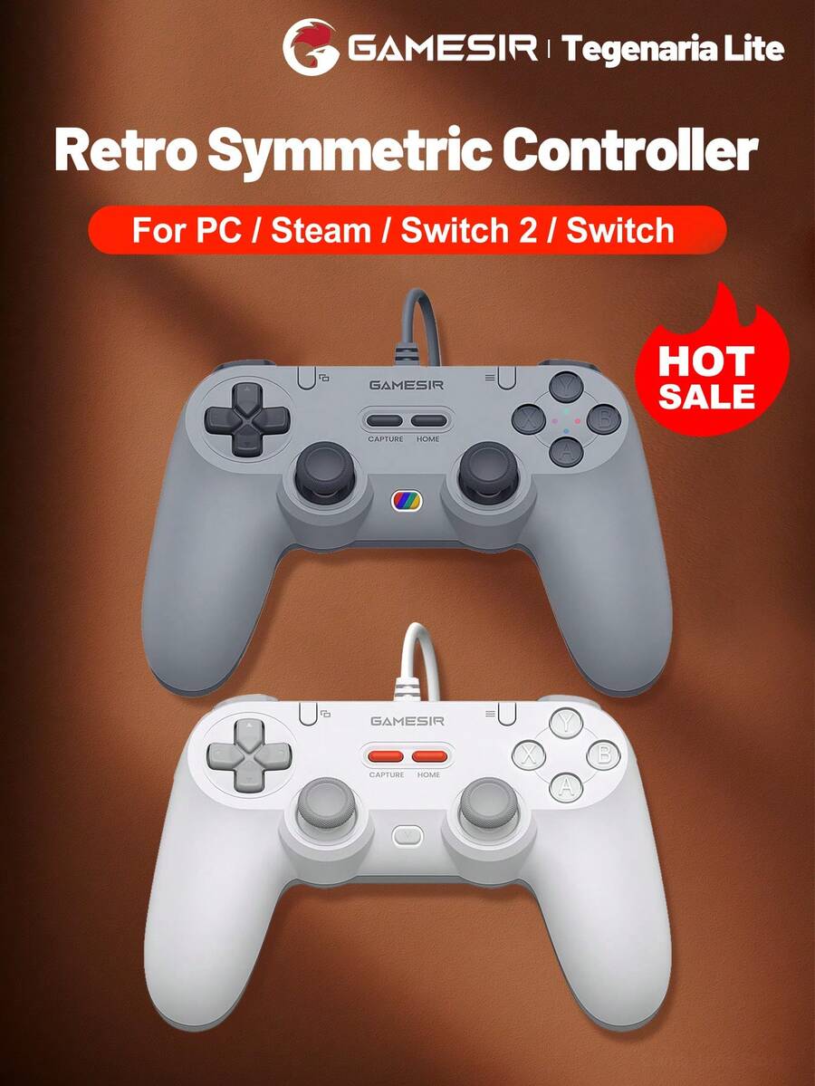 GameSir Tegenaria Lite Retro Gamepads For PC Steam Wired Symmetric Controller Compatible With Nintendo Switch 2 Switch Android IOS Mobile Phone With Hall Effect Sticks, Retro Design, 1000Hz Polling Rate, Analog Triggers, Immersive & Subtle Vibration Feedback, Cushioned Membrane Buttons, Ergonomic Design, Turbo Function, Two Mappable Back Buttons, Gray And White