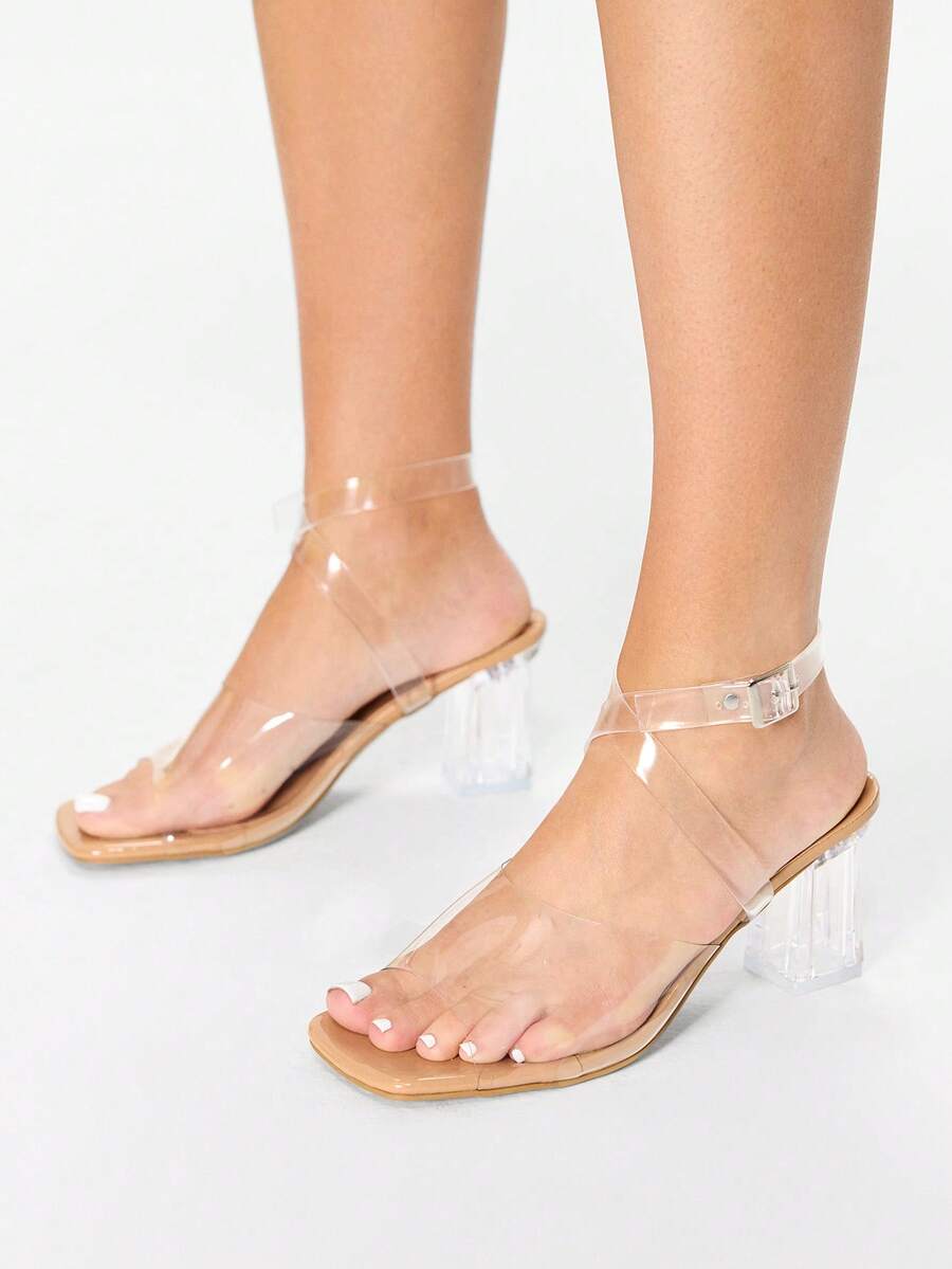 Glitzique Summer New Transparent Women's Sandals Influencer Strap Chic Chunky Heel Crystal Slippers Sexy Outdoor Fashion High Heel Peep Toe Slides