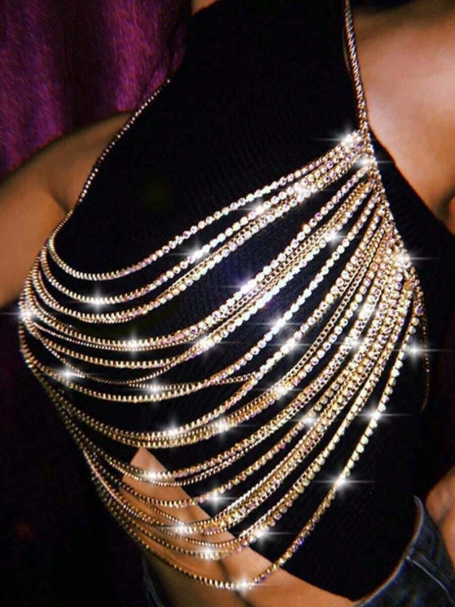 Gold Rhinestone Multilayer Sexy Bikini Body Chain