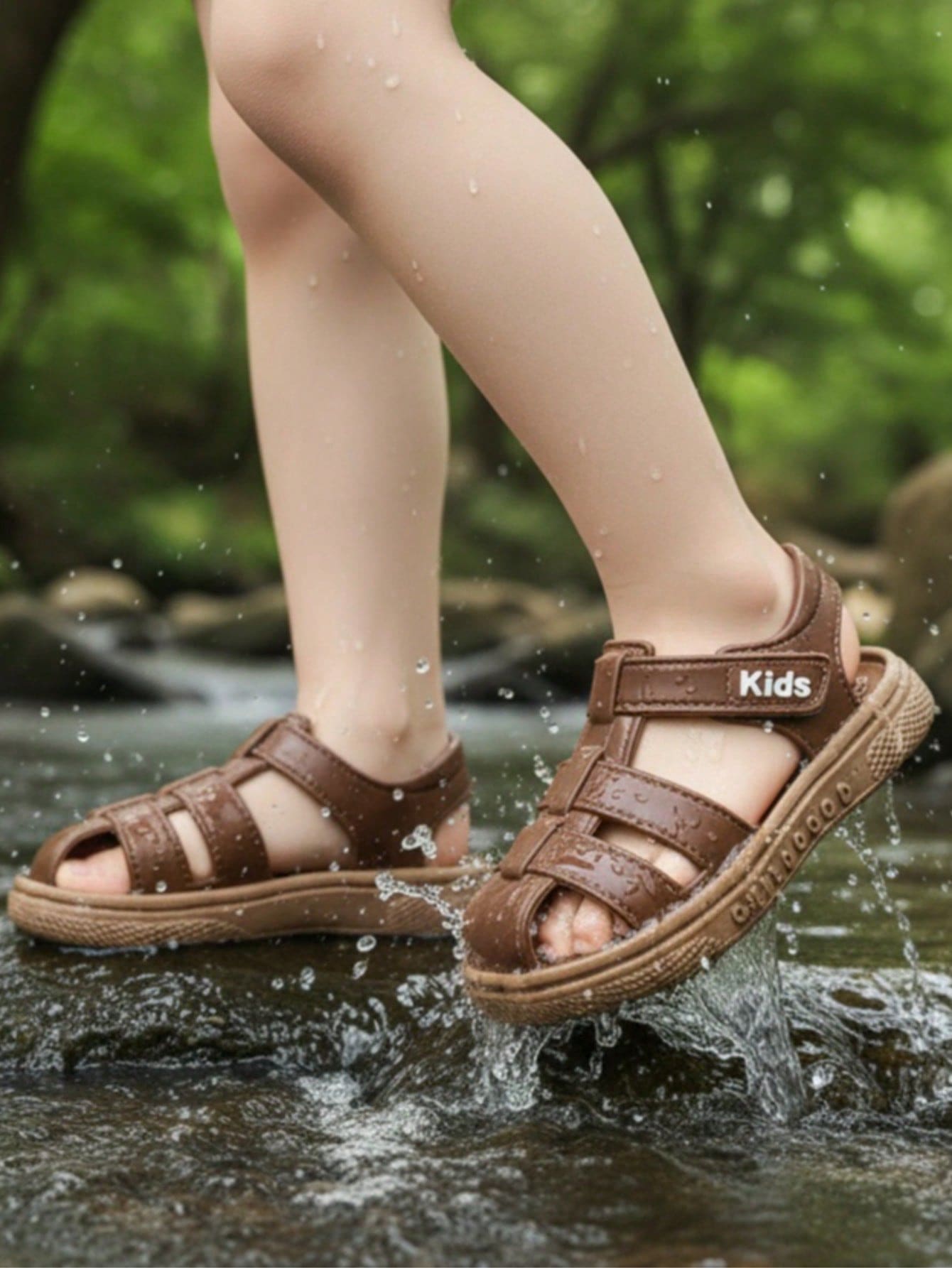 HAHABOBO New Brown Fashion Children Sandals - Solid Color Striped Pattern, Stylish And Simple, Versatile For Daily Wear, Elegant And Graceful, Suitable For Boys, Girls And Toddlers. Comfortable And Soft, Flat And Lightweight, With Design, Suitable For Outdoor Walking, Commuting, School, Beach, Garden And Other Occasions, Can Also Be Worn As Slippers; Perfect For Summer, Autumn And All Seasons.