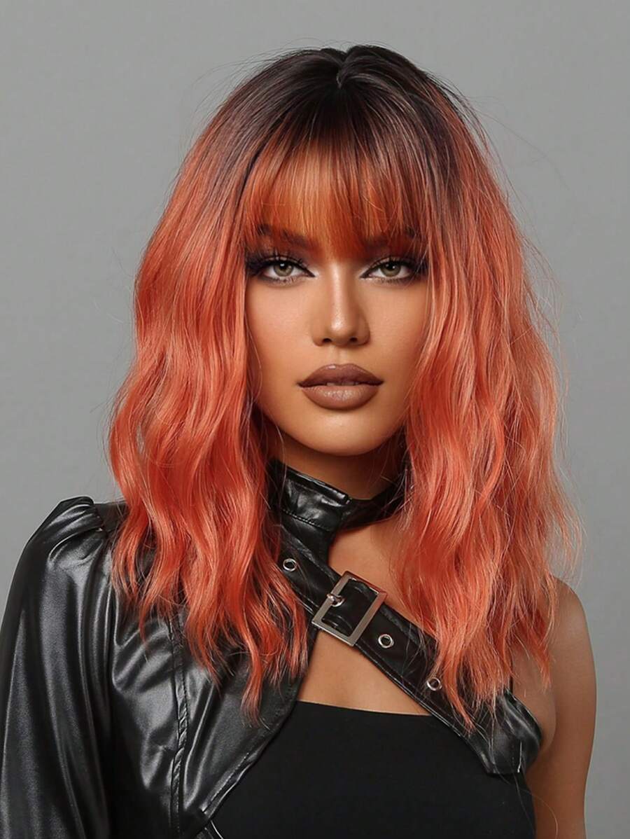 HAIRCUBE 18 Inch Ombre Orange Wigs,Natural Synthetic Wigs with Bangs for Women Halloween Wigs