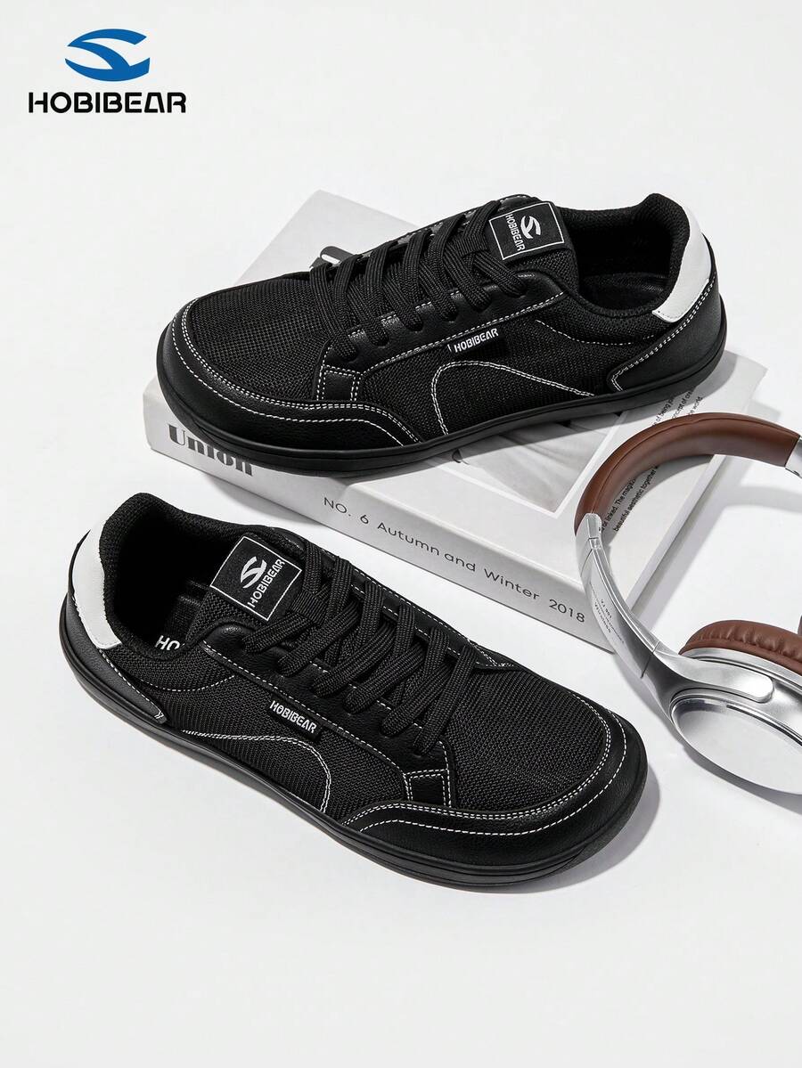 HOBIBEAR Fashionable Wide Toe Sports Shoes, Training Shoes, Fitness Shoes, Unisex Casual Athletic Sneakers, Black Flat Shoes