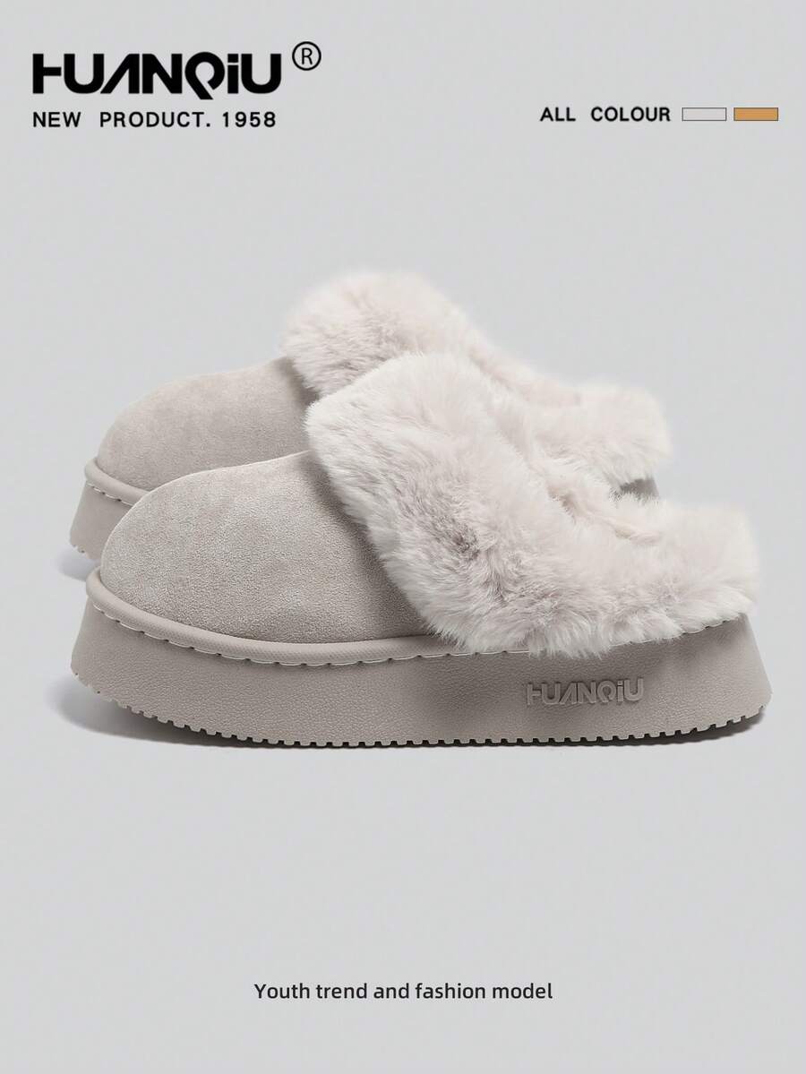 HUANQIU Christmas Gift - Women's Winter Slippers - Thick Sole Flat Plush Slippers: Warm And Comfortable Thick-Sole Snow Boots, Women's Short Casual Shoes, Suitable For Women In Winter, Plush Shoes.