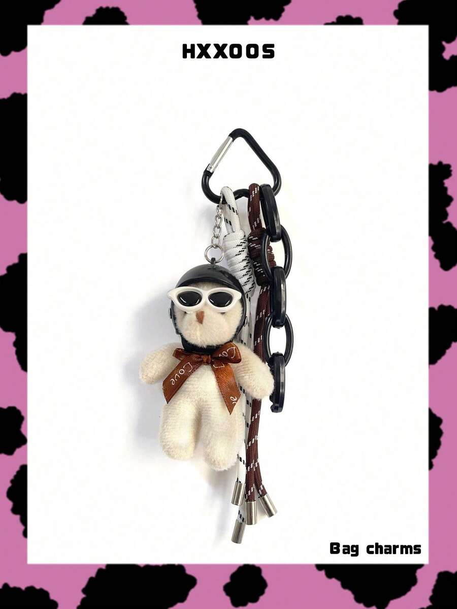• HXXOOS 1pc Couple Fashion Bag Pendant Cute Sunglasses Bear Keychain Metal Love Key Hanger White Rope Knot Bag Hanger Lady Key Chain Cool Small Gift, Suitable For Lady, White Collar, Lady, Female, Girl, Use This Pendant To Enhance Your Style