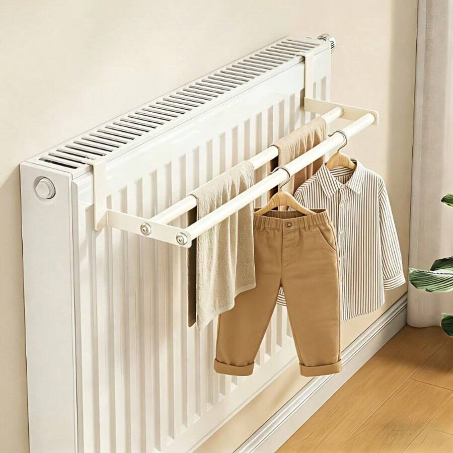 Heavy Duty No Drill Radiator Dryer Thickened Metal Double Rod Clothes Dryer, Metal Material, Space Saving Laundry Style, Wall Mounted Drying Rack Pattern, Heated Radiator Dryer Rack, Suitable For Clothes Towels Shoes Quick Heating, Fits Most Radiators Drying Solution