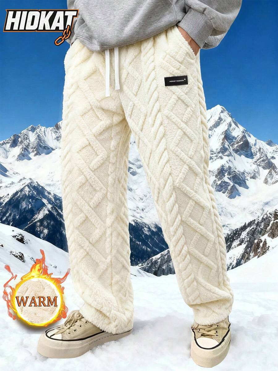Hidkat Men's Thermal Lined Sweatpants, Coral Velvet Textured, Elastic Waist With Drawstring, Pockets, Suitable For Daily Casual Wear And Lounging, Autumn/Winter