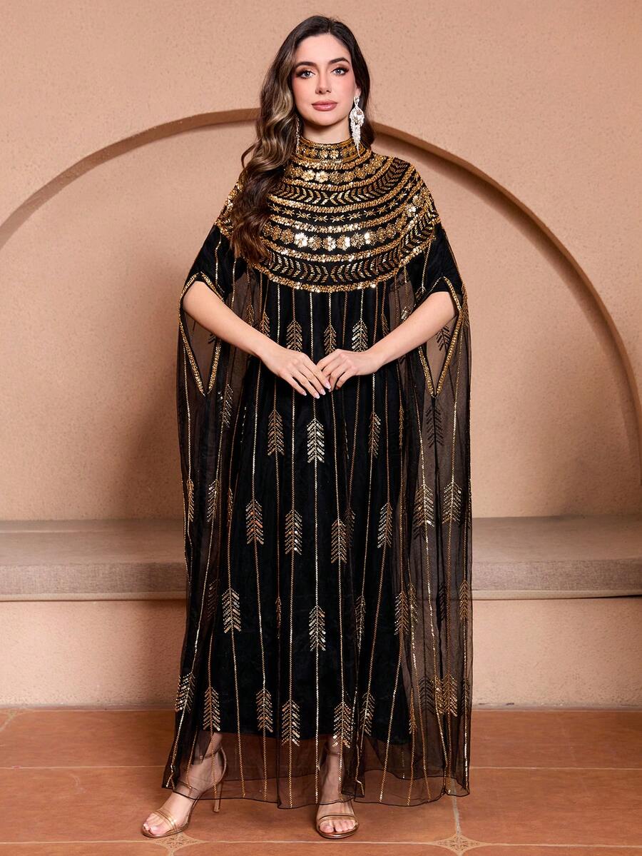 • JINLICX Luxury Women's Abaya Suitable For Wedding Parties Occasions Spring And Summer Collection - Black - View 3