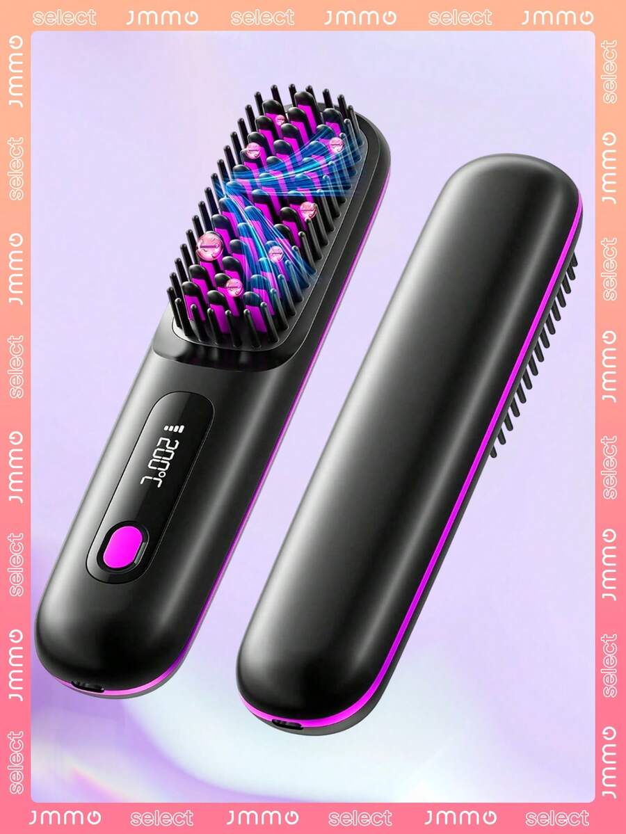JMMO Cordless Hair Straightener Brush With LCD Display Temperature Adjustable, Portable Mini Straightening Brush For Travel, Negative Ion Hot Comb For Women Styling Hair Styler, Anti-Scald, Ceramic Coating