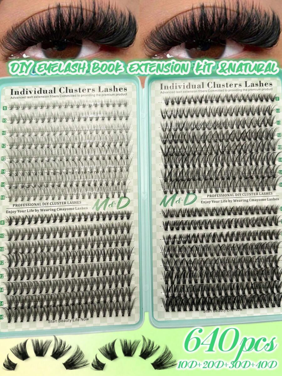 Large Capacity 640 Individual False Eyelashes, 8-16mm D-Curl, DIY Natural Lash Creation, Ultra-Thick And Soft, Extremely Smooth, Ultra-Lightweight, Reusable, Segmented Individual False Eyelashes, Eyelash Extension Kit, Suitable For Travel, Daily Use (Beginner-Friendly), Weddings, Dates, Parties, Holidays, Etc. False Eyelashes, Eyelash Clusters, Eyelash Kit (10D/20D/30D/40D)