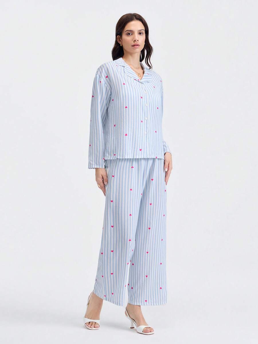 Loungeista 2pcs Women Loose Comfortable Breathable Long Sleeve Top And Long Pants Pajama Set, Cute Home Wear, Fall & Winter Clothes