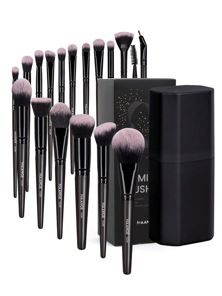 MAANGE 18pcs Professional Makeup Brush Set, Soft Fiber Material, Portable, Including Foundation Brush, Eyeshadow Brush, Blending Brush, Eyebrow Brush, Travel Essential, With Storage Case, Makeup Brush Set, Makeup Brush Set, Makeup Brush Set, Complete Makeup Tools, Makeup Brush Set, Makeup Brush Set, Makeup Gift Set