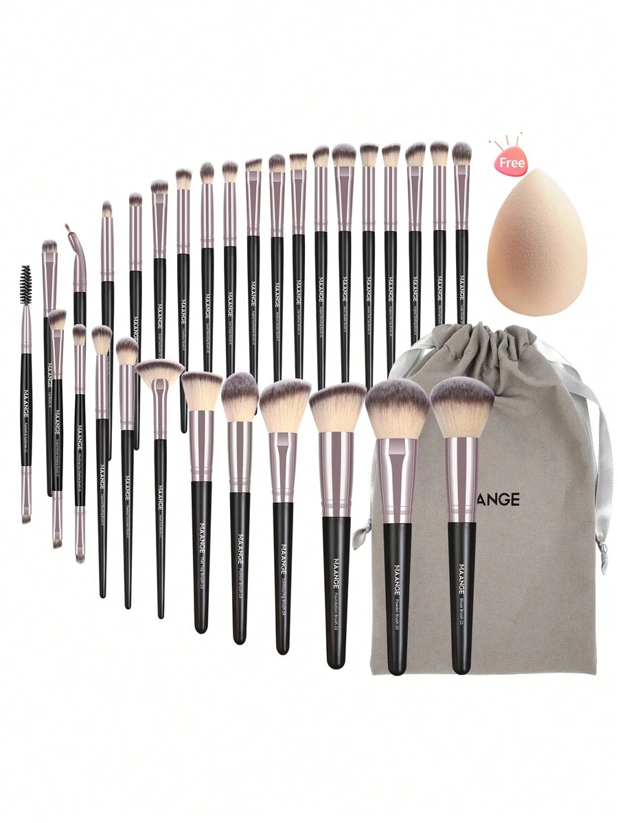 MAANGE 30pcs Professional Makeup Brush Set With Velvet Bag, Soft For Blush, Foundation Brush, Eyeshadow Brush, Eyebrow Brush, Lips Brush Free Powder Puff,Brush Set,Makeup Brush Kit,Make Up Brush Set,Make Up Set Complete,Makeup Brush Set,Complete Makeup Kit,Brush Kit,Brushes Makeup Set,Makeup Gift Set,Set