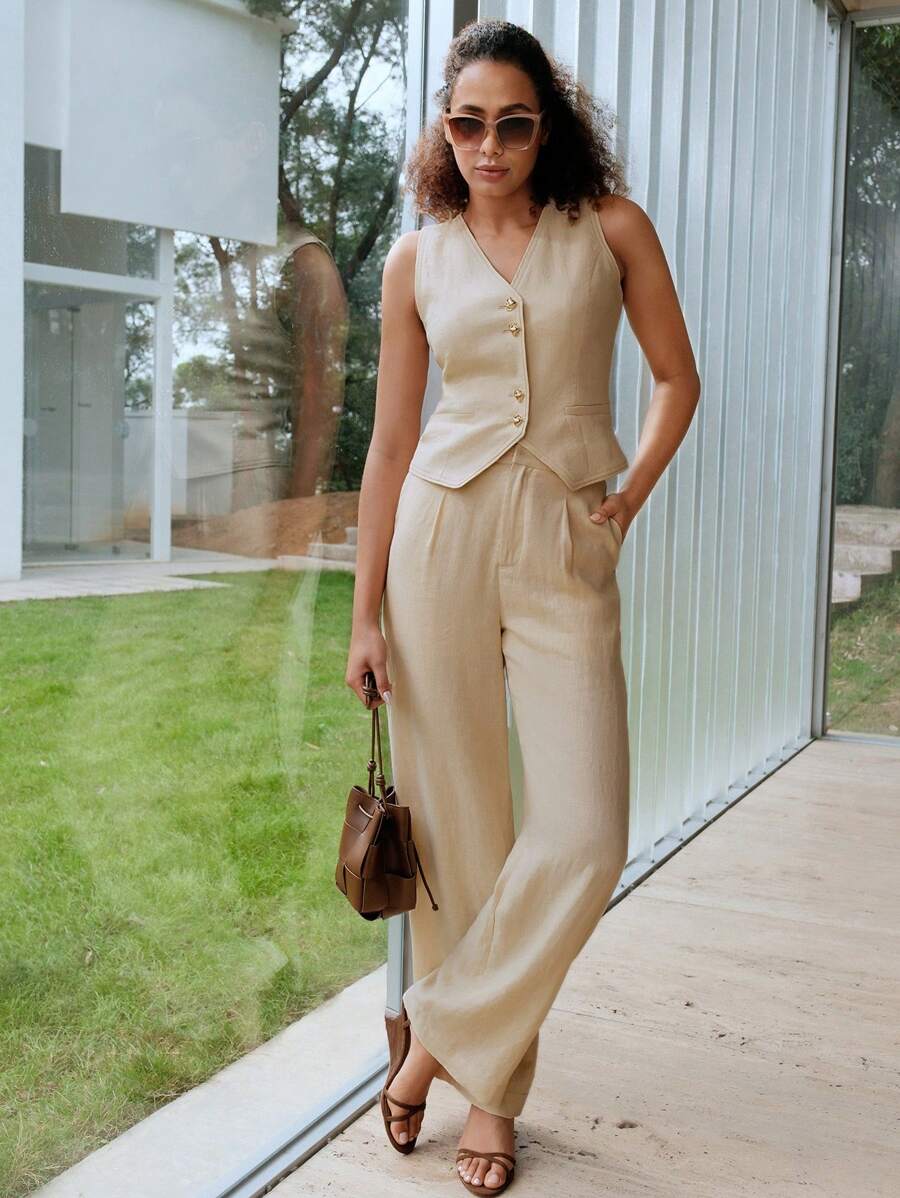 MOTF PREMIUM BUTTON FRONT V NECK TANK TOP