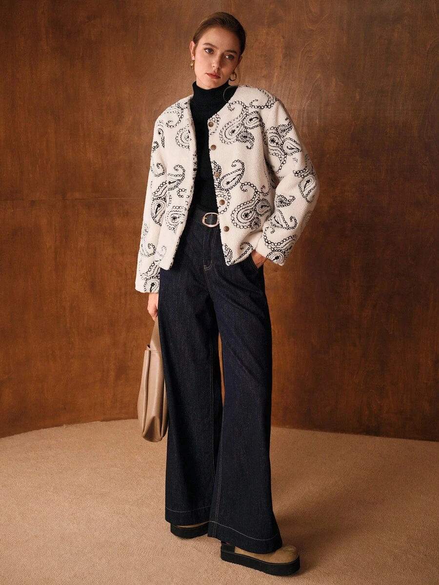 MOTF PREMIUM WOMEN'S CASHEW FLOWER PATTERN FUZZY FLEECE WINTER JACKET