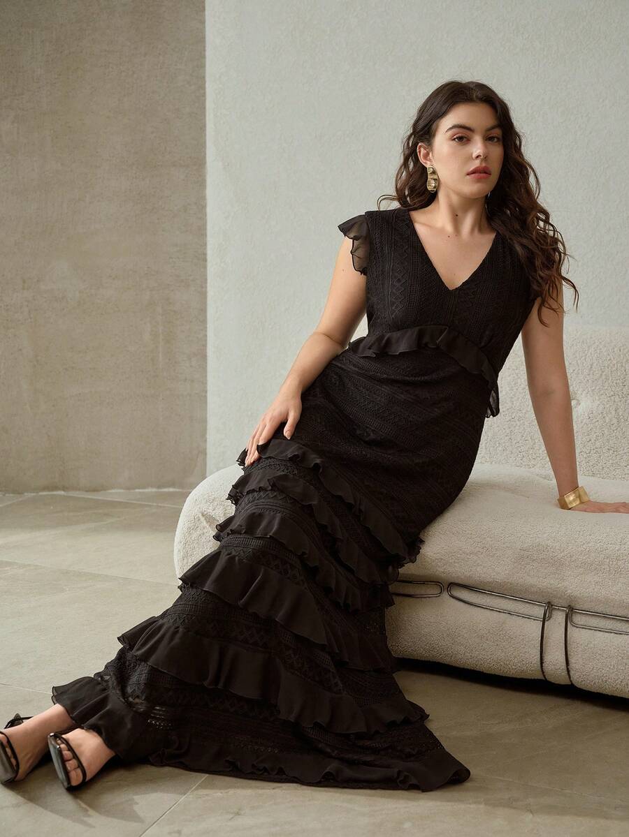 • MOTF PREMIUM WOMEN'S PLUS RUFFLE SLEEVELESS PARTY COCKTAIL DRESS, SPRING/SUMMER - Black - View 3