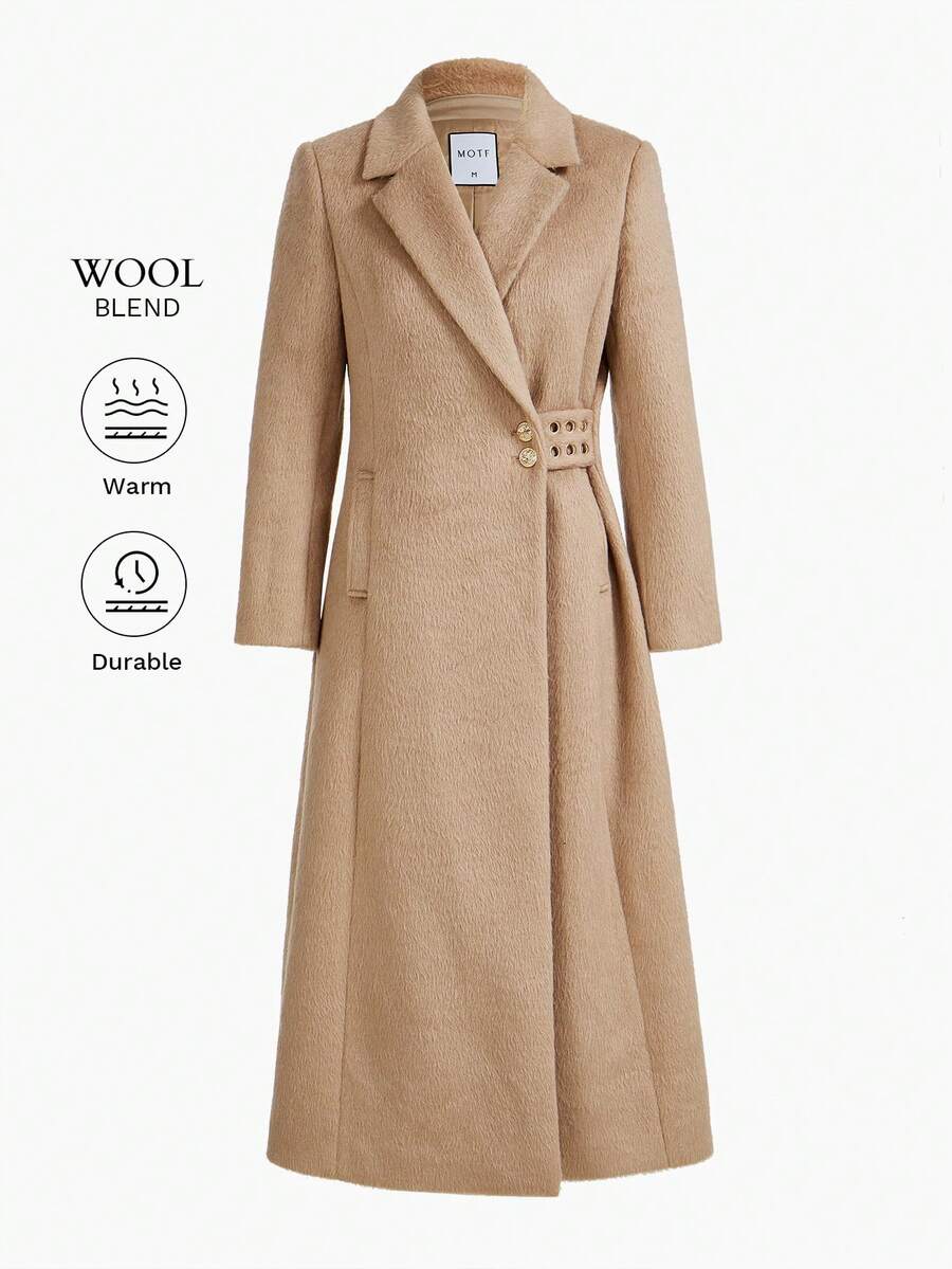 MOTF STUDIO WOOL LAPEL COLLAR SLANT POCKET BUTTON SIDE LONGLINE OVERCOAT FOR AUTUMN/WINTER