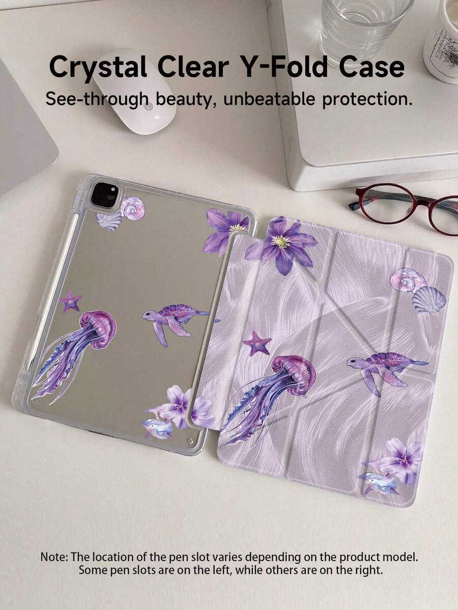 Marine Creatures Sea Turtles And Octopuses Pattern Tablet Case Compatible With Air 11-Inch M3 2025 / M2 2024, Air 5th Generation 2022 , (A16) 11 Inch 11th Generation 2025,Compatible With Samsung Galaxy Tab,Kindle Paperwhite 12th Gen 2024, Clear Back ,Fashion Pattern Protective Case,Autlueomatic Sleep And Wake-Up Function, Airbag Protection, Suitable For Gifts And Office Use