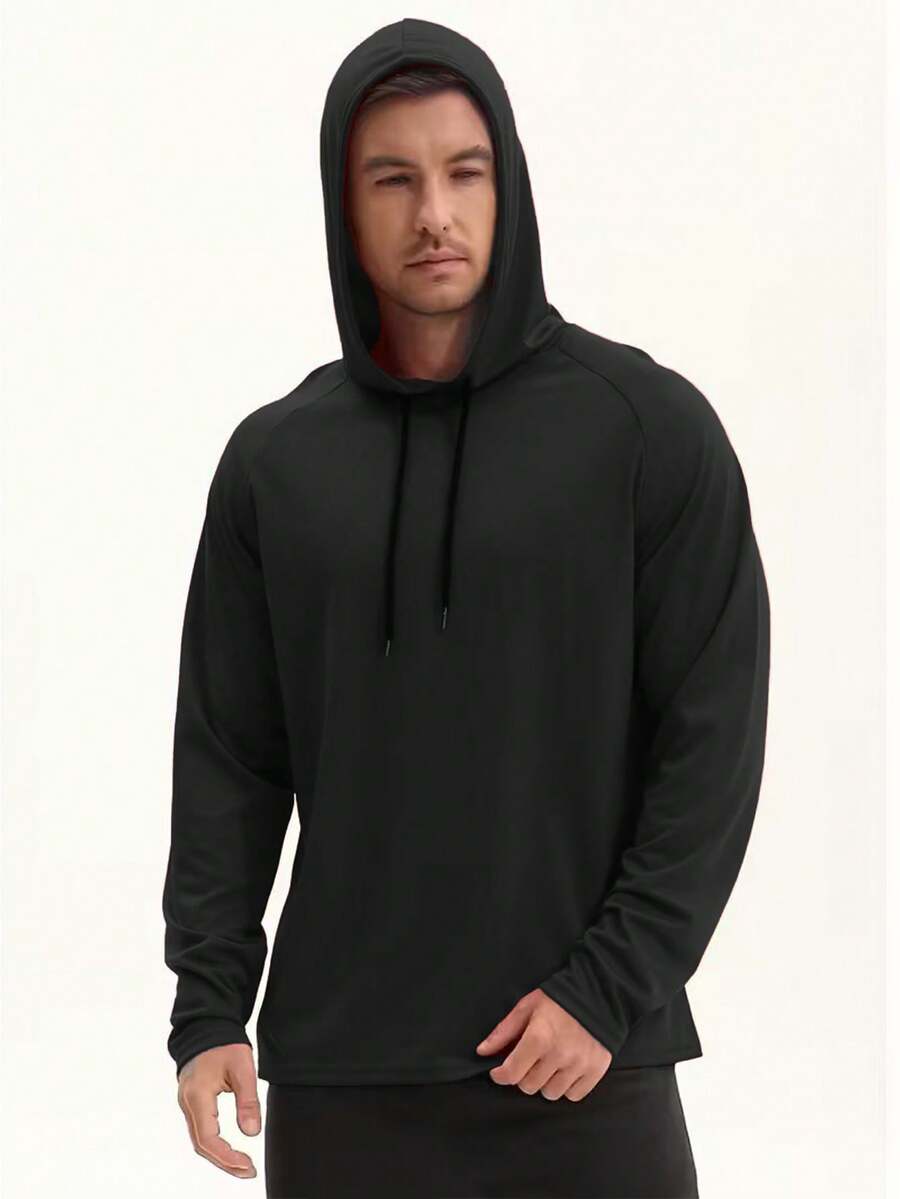 Men's Casual Loose Fit Hooded Long Sleeve Activewear, Suitable For Running, Gym, Leisure, Made Of Breathable Polyester Fabric