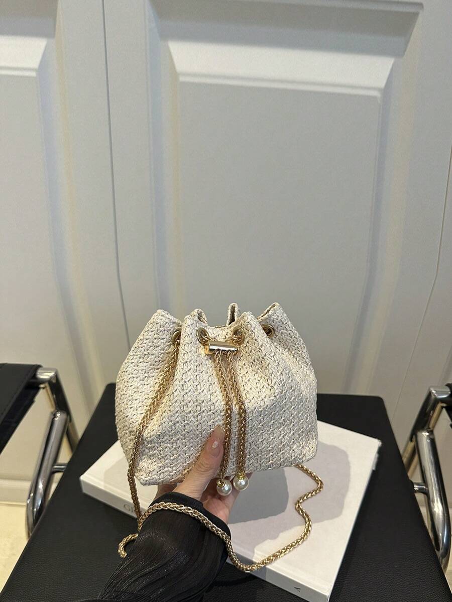 Mini Fashionable Solid Color Hollow Straw Chain Drawstring Bucket Mini Crossbody Bag