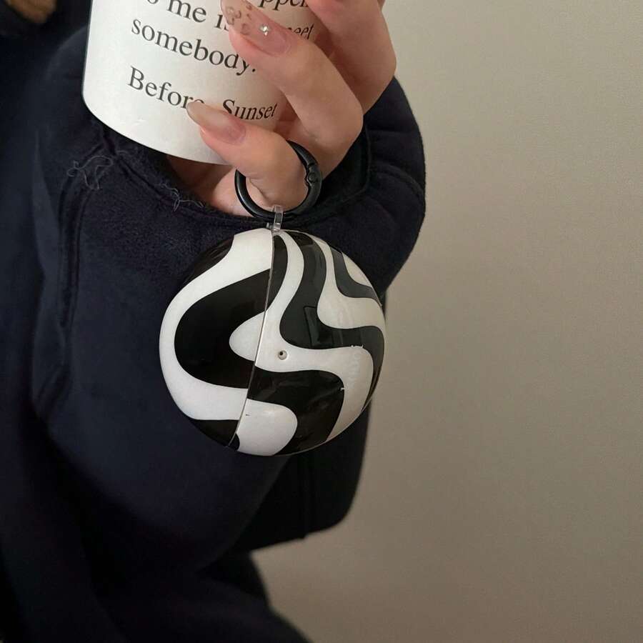 Minimalist Black Asymmetrical Line Zebra Pattern Earphone Case Compatible With Huawei Freebuds 7i, Freebuds 2, Freebuds SE3, Freebuds 5i, Buds Pro 3, Cute Korean Style Earphone Case