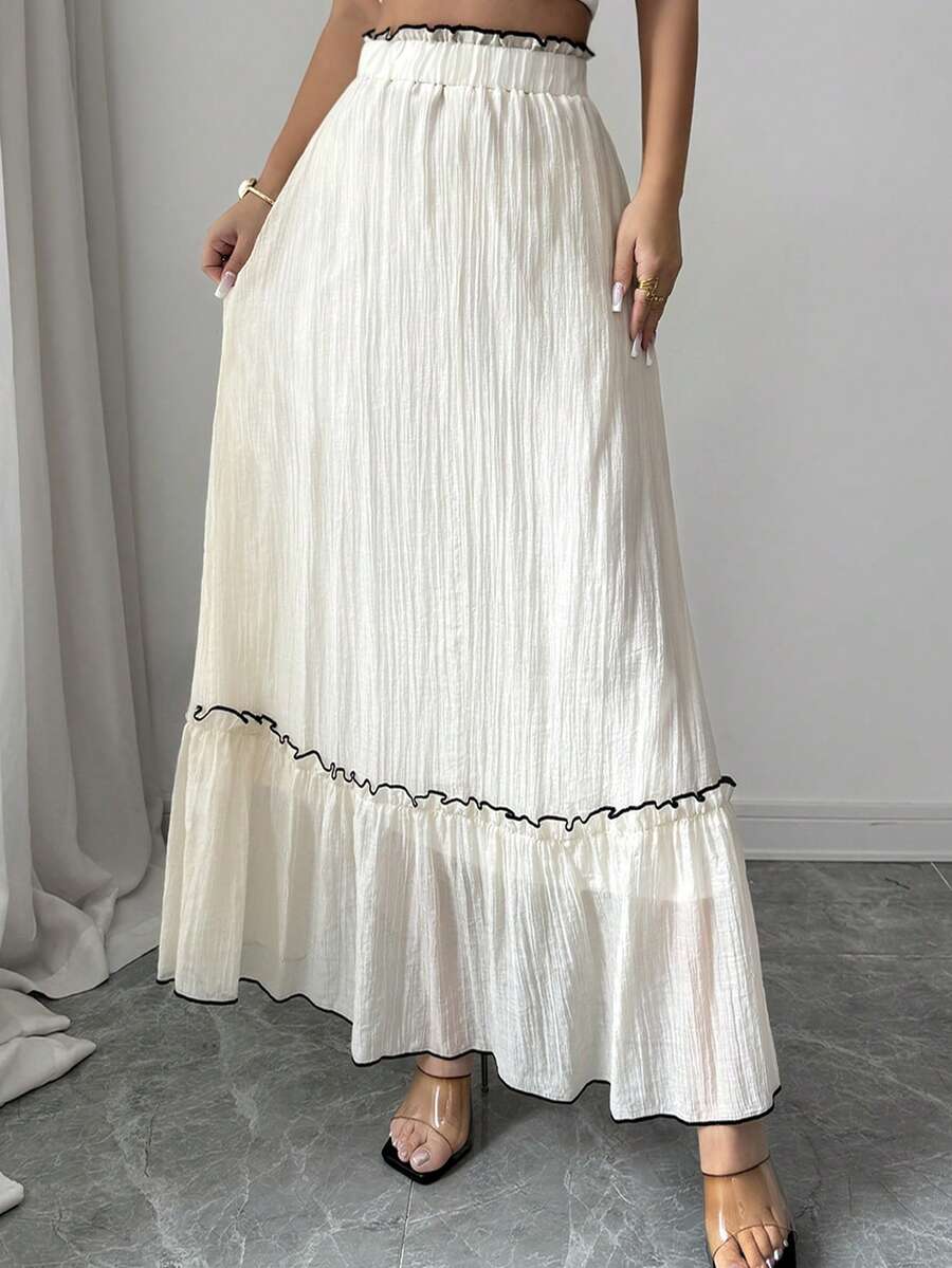Modelyn A-Line Elastic Waist Ruffle Hem Patchwork Skirt