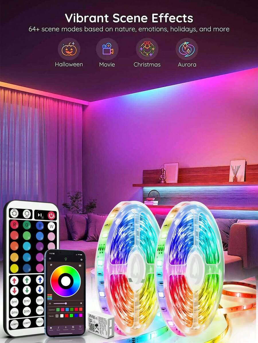 NBBUFF 3ft-100ft Led Strip Lights For Room Decor, With 44-Key Remote And App Control, Change Color In Sync With Music, Timing Setting, Adjustable Brightness, Led Lights For Bedroom, Living Room, Game Rooms, Kitchen,TV Backlight, Holiday Party Decor, Gift Giving