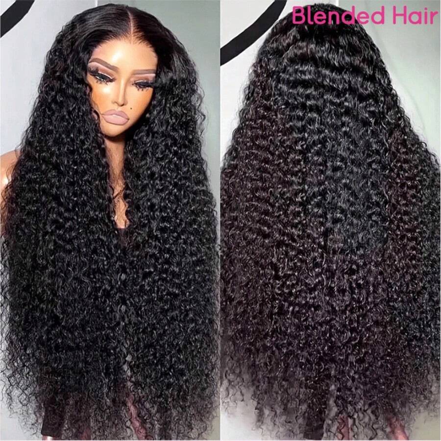 PQL HAIR 13X4 Glueless Wigs Human Blended Hair Pre Plucked Deep Curly Wave Lace Front Wigs Blended Hair Pre Plucked 13X4 HD Lace Front Wigs Human Blended Hair Deep Wave Bleached Knots Lace Wigs Hair 200% Density