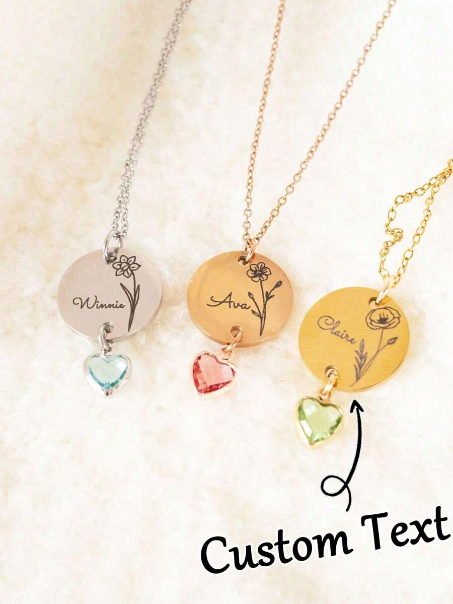 Personalized Birth Flower Name Necklace With Birthstone, Custom Engraved Pendant Gift, Suitable For Women, Mother's Birthday Gift, Women's Christmas Gift, Custom Name Engraved Pendant Gift, Suitable For Women, Mother's Birthday Gift, Christmas Jewelry, Holiday Gift, Christmas Gift, Thanksgiving Gift, Halloween Gift