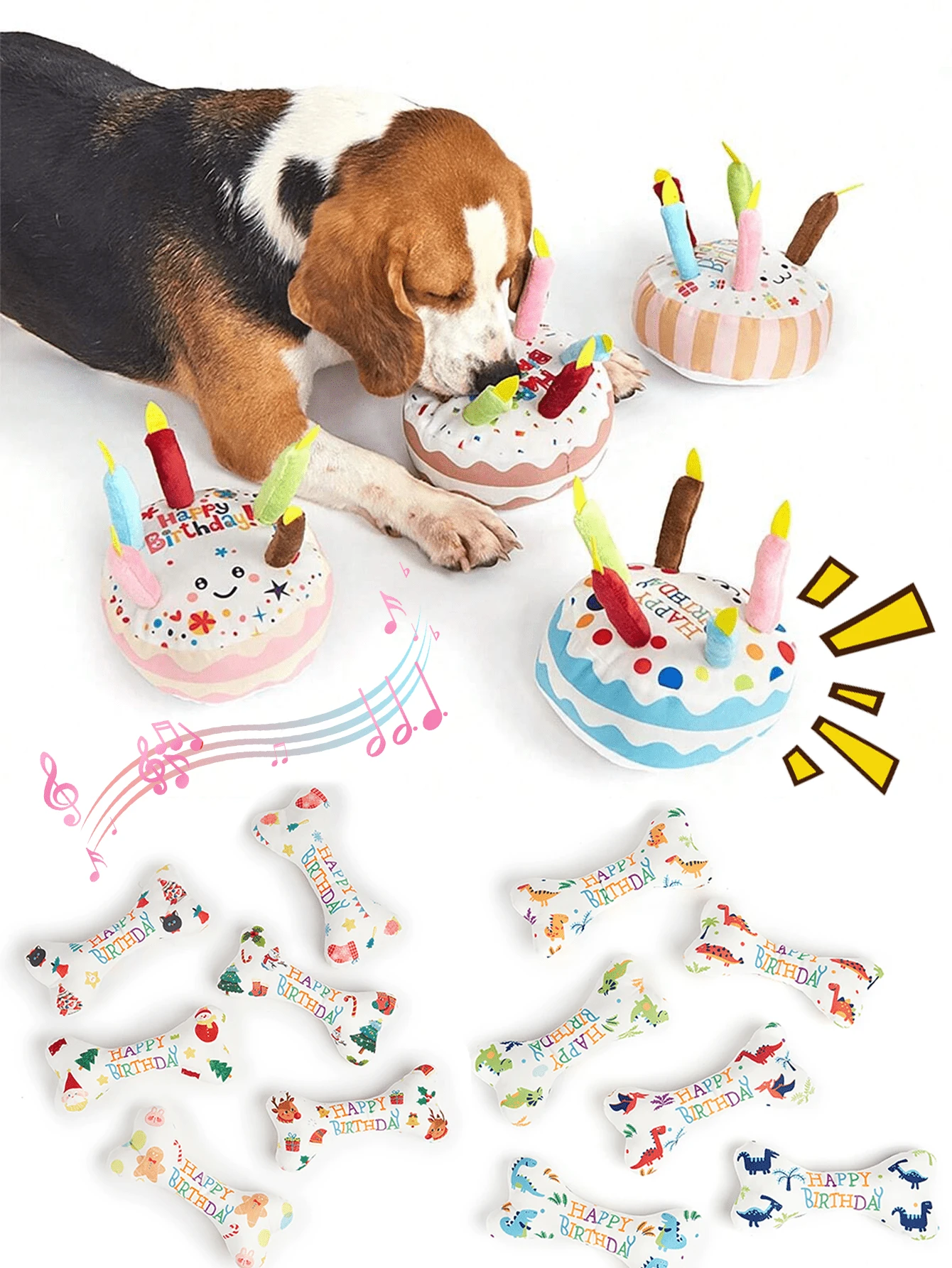 Pet Toys For Cats & Dogs, Stress Relief Chew Toys, Teeth Cleaning, Bites Resistant, Birthday Gift, Birthday Cake With Squeaky Bone
