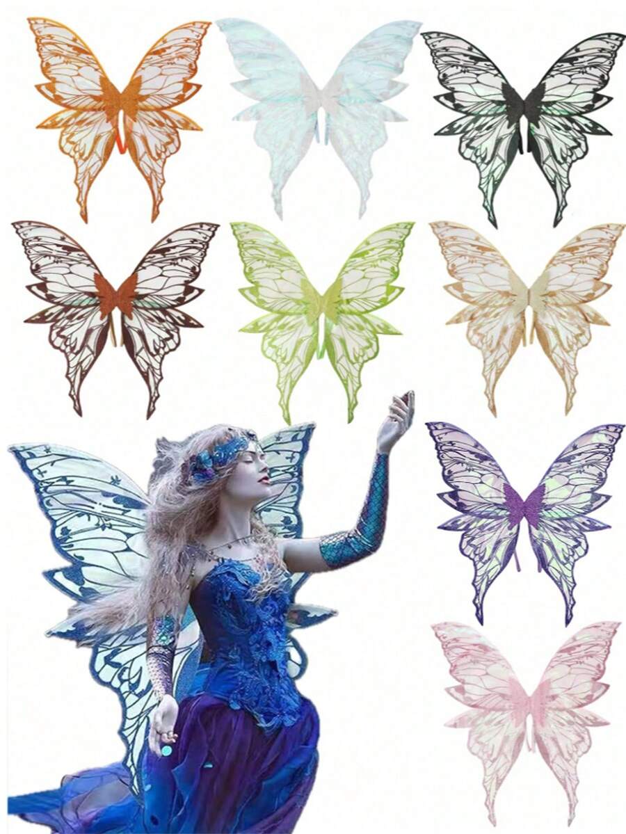 Plus Size 4-Leaf Foil Butterfly Wings/Wing Set, Shiny Transparent Butterfly Fairy Wings Adult Costume, Angel Wings For Women, Halloween Costume