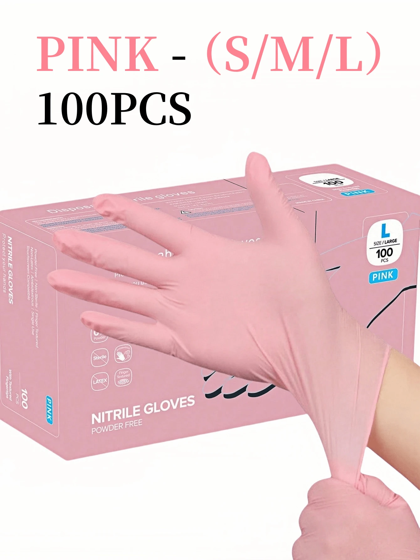 Powder-Free Pink Disposable Nitrile Gloves, Boxless, Durable Household Cleaning Gloves, Latex-Free, Waterproof, Anti-Static, Multi-Purpose Gloves, Linen Fingertips, Suitable For Hair Dyeing, Beauty, Painting, Arts And Crafts, Home Cleaning, Kitchen, Bathroom, Home Decor, Holiday Gifts, Party Favors. Size: S, M, L, XL
