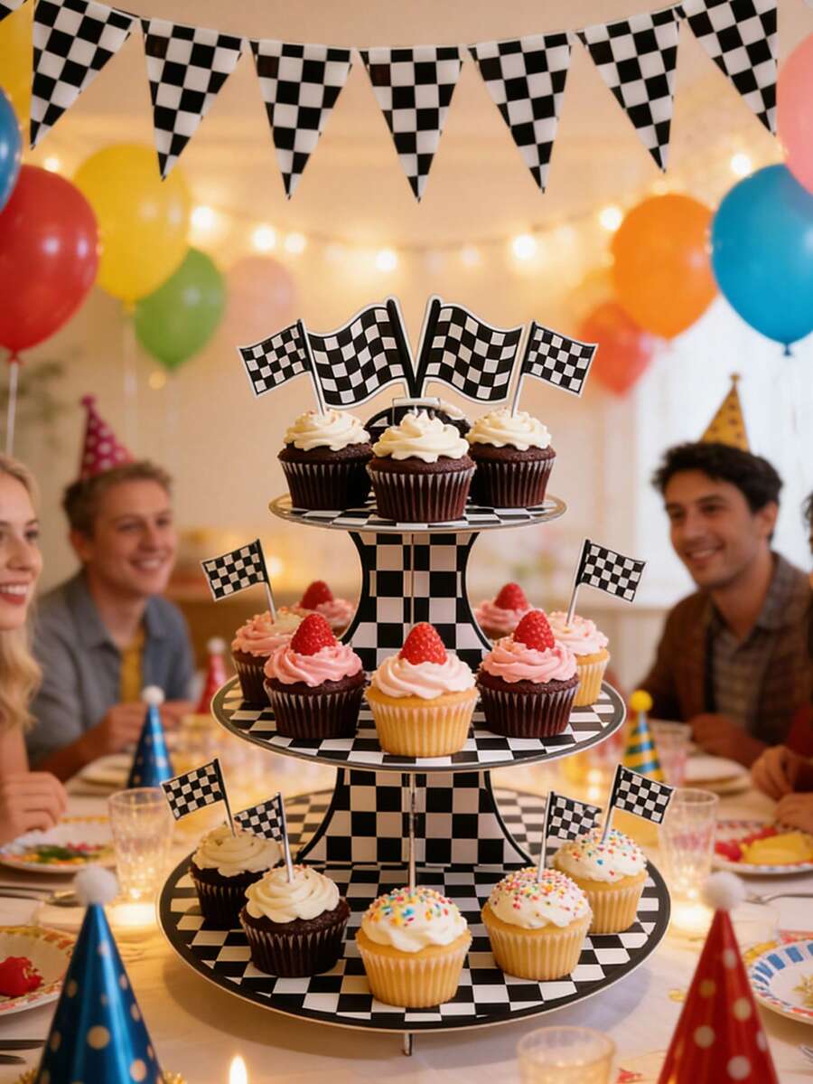Racing Theme Birthday Decoration Set, Black & White Checkered Flag Banner, 3-Tier Racing Theme Cupcake Stand, Mini Checkered Flag Cupcake Decorations, Black & White Checkered Pattern Decor, Suitable For Car Themed Party Supplies, Racing Theme Party Decorations, Birthday Party Decor, Checkered Party Decor, "Race Car Party" Supplies, Creative DIY Cake Decorations, Birthday Party Centerpieces, Cupcake And Dessert Display Stand, Baby Shower