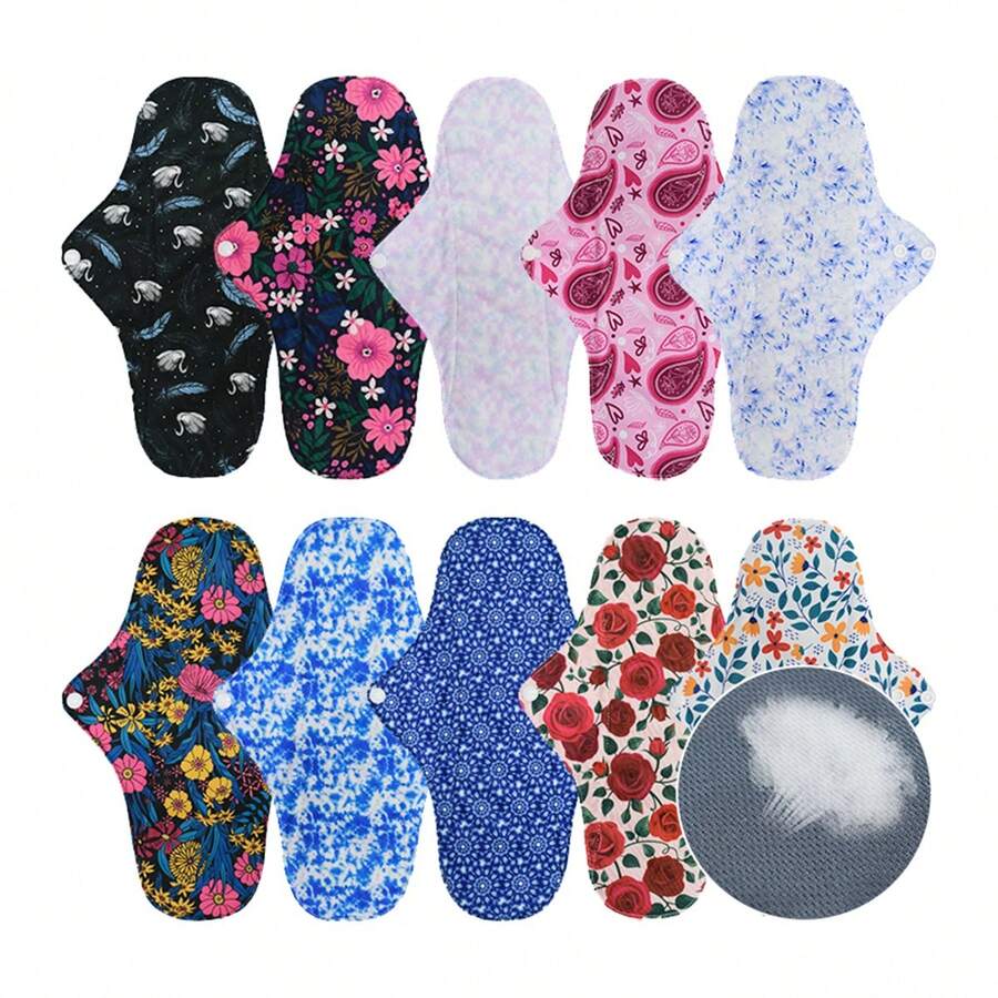 • Reusable Menstrual Pads, Washable Overnight Cloth Panty Liners, 10-Piece Bamboo Cloth Large Sanitary Pads For Heavy Flow, - Multicolor - View 2