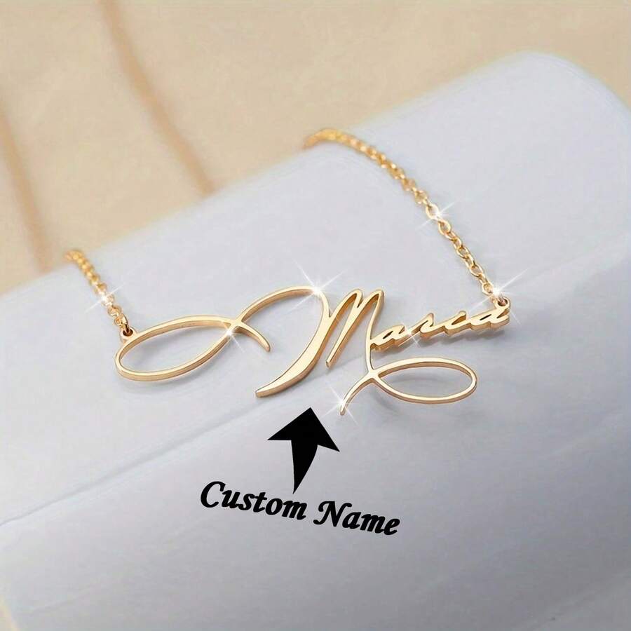 Stainless Steel Customized Gold Artistic Font Style Name Necklace Fashionable And Elegant Handwriting Style Personalized Private Custom Nameplate Pendant Necklace Women's Charm Jewelry Valentine's Day Gift