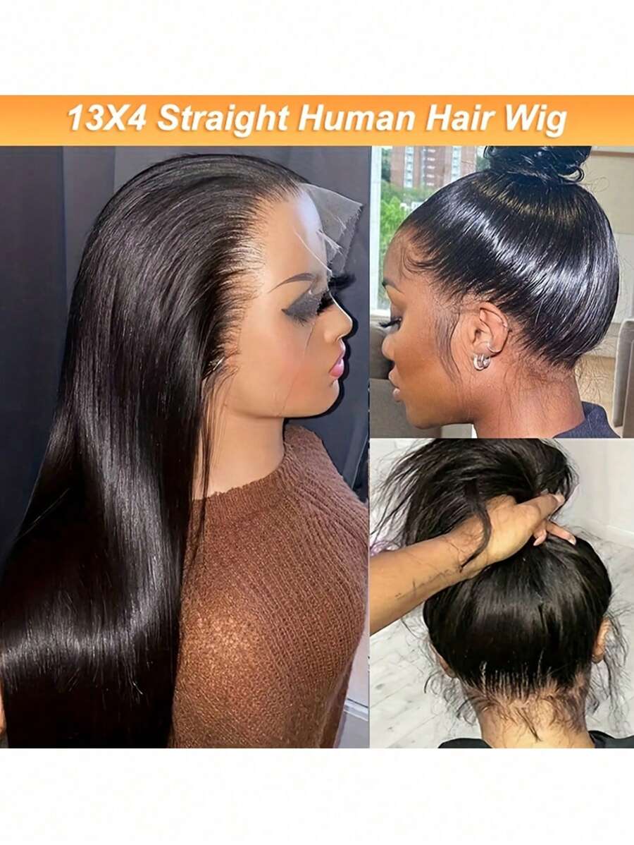 • Straight Lace Front Wigs Human Hair 13x4 Lace Frontal Wigs 180 Density Unprocessed Brazilian Straight Virgin Human Hair Wigs Pre Plucked With Baby Hair For Women - Black - View 3