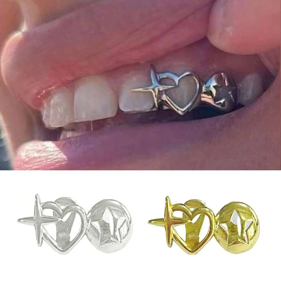 THATBOY 1pc/2pcs/4pcs/Set New Hip Hop Shiny Tooth Grillz, Star Cubic Zirconia Tooth Caps, Micro-Inlaid Upper & Lower Teeth Grillz, Unisex Jewelry