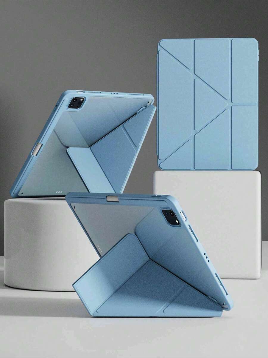 Transparent Acrylic Case Compatible With IPad Air 11 13 M2 2025 M3 Support Multi Angles Folding Y-Shaped Stand Cover Compatible A16 11th 2024 Air 5 Air 4 10.9 9th 8th 7th 10.2 5th 6th 9.7 10th Gen 2021 Pro 11 12.9 Mini6 7with Pencil Holder, Auto Wake/Sleep-Ice Blue