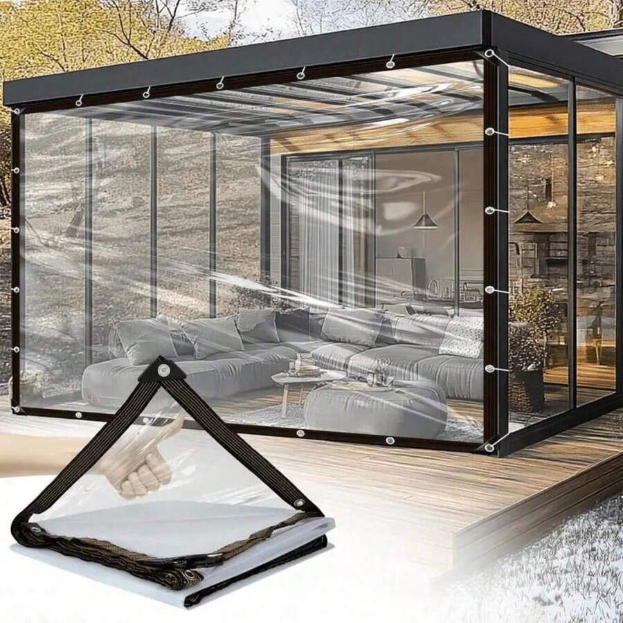 Transparent Waterproof Tarpaulin, Waterproof Rain Cover, Heavy-Duty Oilcloth Covering Film, Clear Vinyl Tarps Tarpaulin With Eyelet - Tarp Cover PE Film With Grommets, Waterproof & Windproof, Rip And Tear Proof Garden Balcony Patio Canopy Awnings, Winter Plants Cover Greenhouse Camping Equipment, Outdoor Use