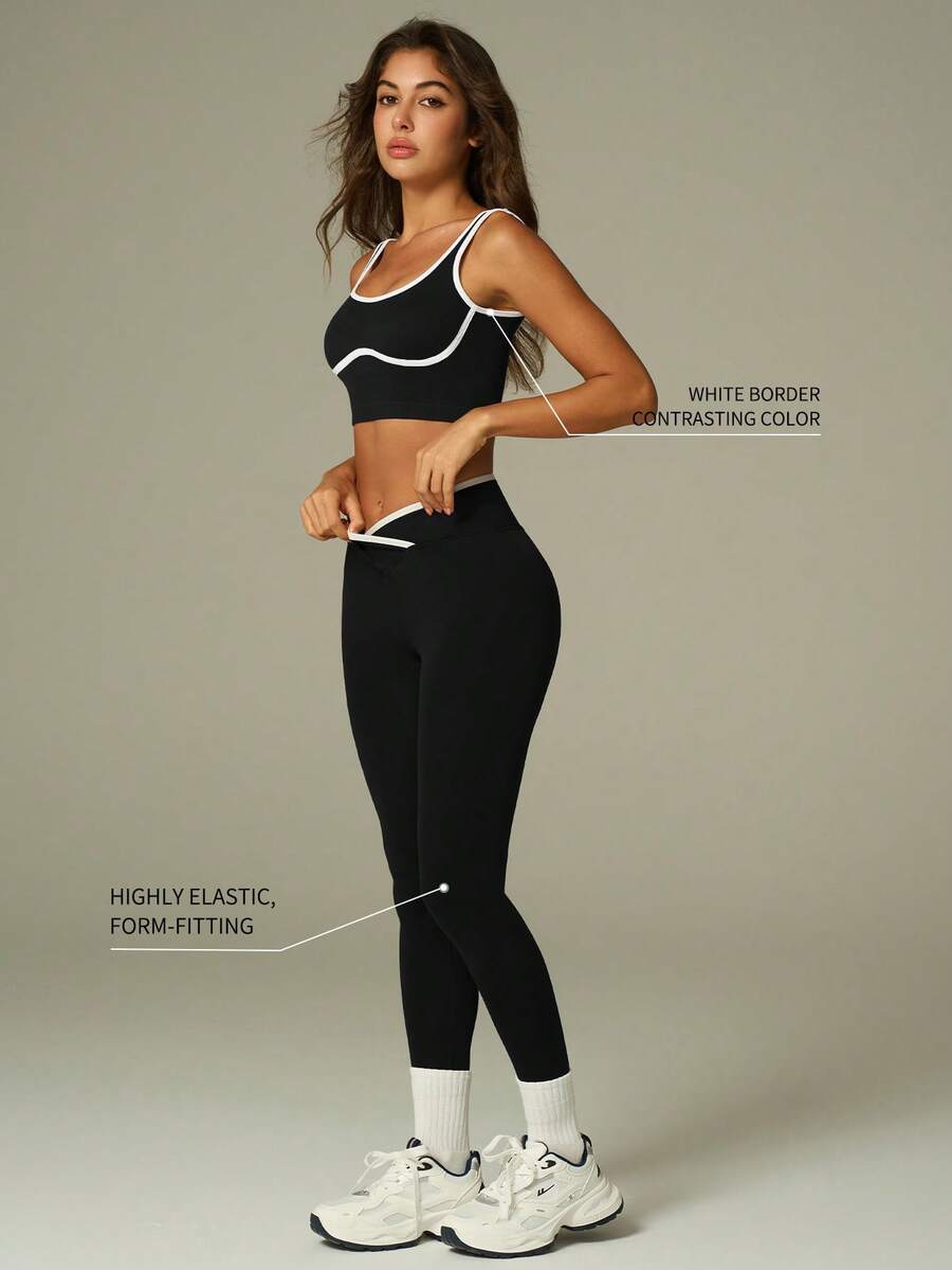 UONNOU Black & White Activewear Set | Slimming Yoga Two Pieces
