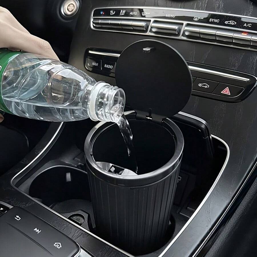 Universal Car Cup Holder Trash Can With Pop-Up Lid ,Premium Round Car Trash Can , With 30 Trash Bags, Fits Cup Holder & Armrest Box, ABS Ergonomic Design For Hands-Free Car, Home & Office Waste Disposal