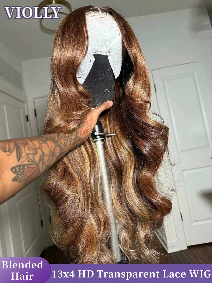 VIOLLY 13x4 High Definition Transparent Lace Front Wig With Ombre Dyed Hair, Paired With Fluffy Wavy Curls, Human Hair Blend, Honey Blonde Lace Front, Brazilian Virgin Hair Wig, For Women