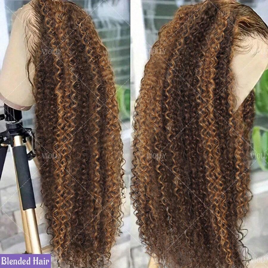 • VIOLLY Jerry Curly 32 Inch 13*6 HD Transparent Lace Front Ear To Ear Free Parting 200% Density Melted Hairline Baby Hair Pre Plucked Pre Bleached Knots Heat Resistant Human Hair Blend Long Luxury Wig #P4/27 Ombre Highlight For - SP4/27 - View 7