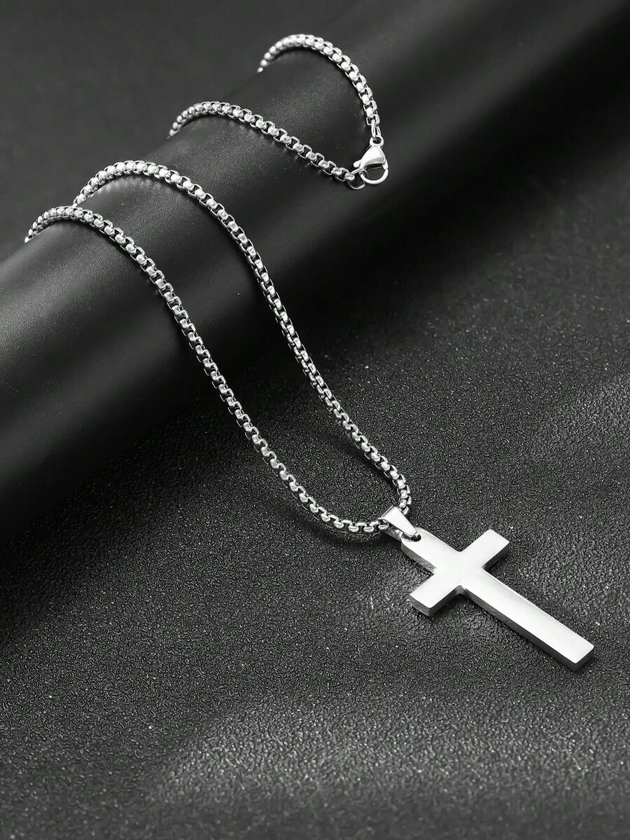 VJS 1pc Punk Street Style Retro Stainless Steel Cross Pendant Necklace For Men, Hypoallergenic