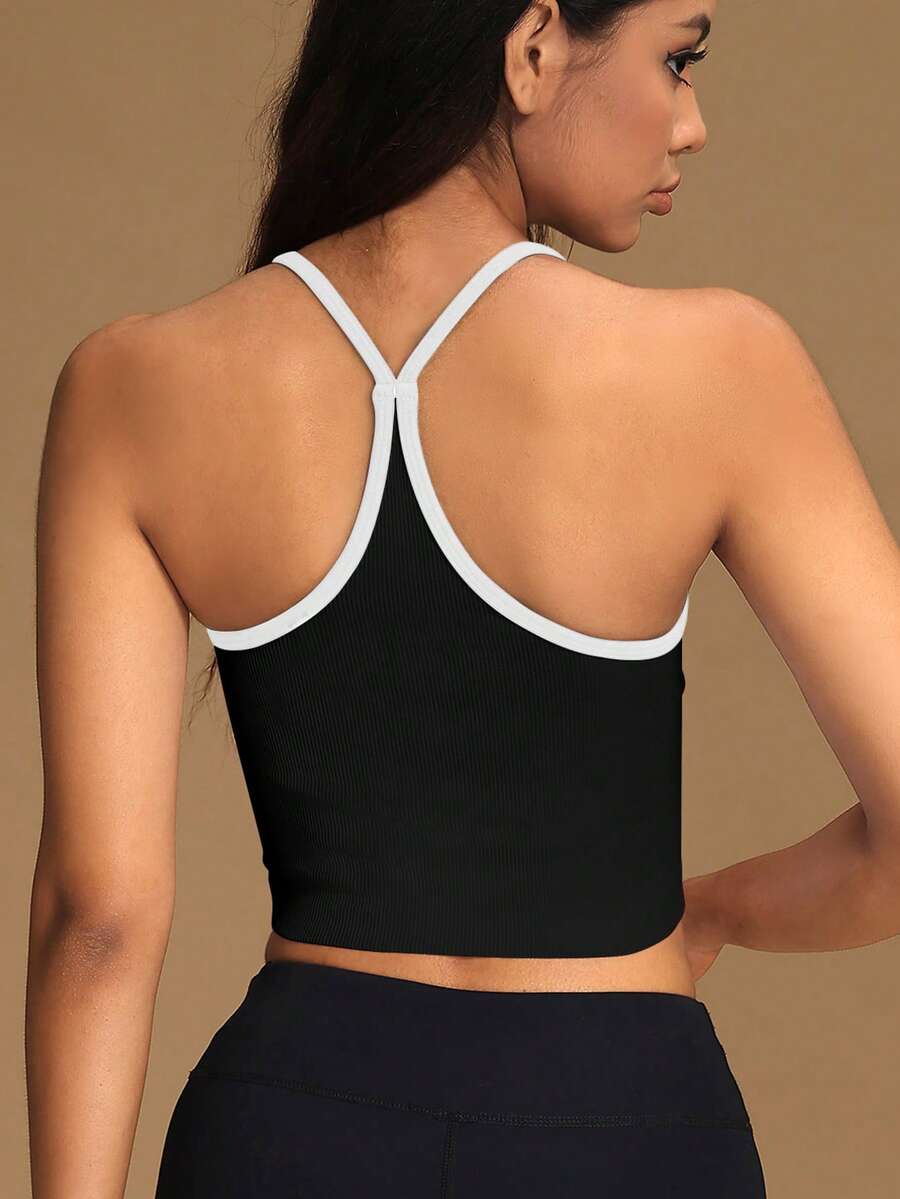 VVX Women Color Block Sweetheart Neck Crop Tank Tops Spaghetti Straps Sexy Backless Workout Yoga Sports Camisole Y2K Seamless Ribbed Casual Soft For Gym Daily Wear All Seasons