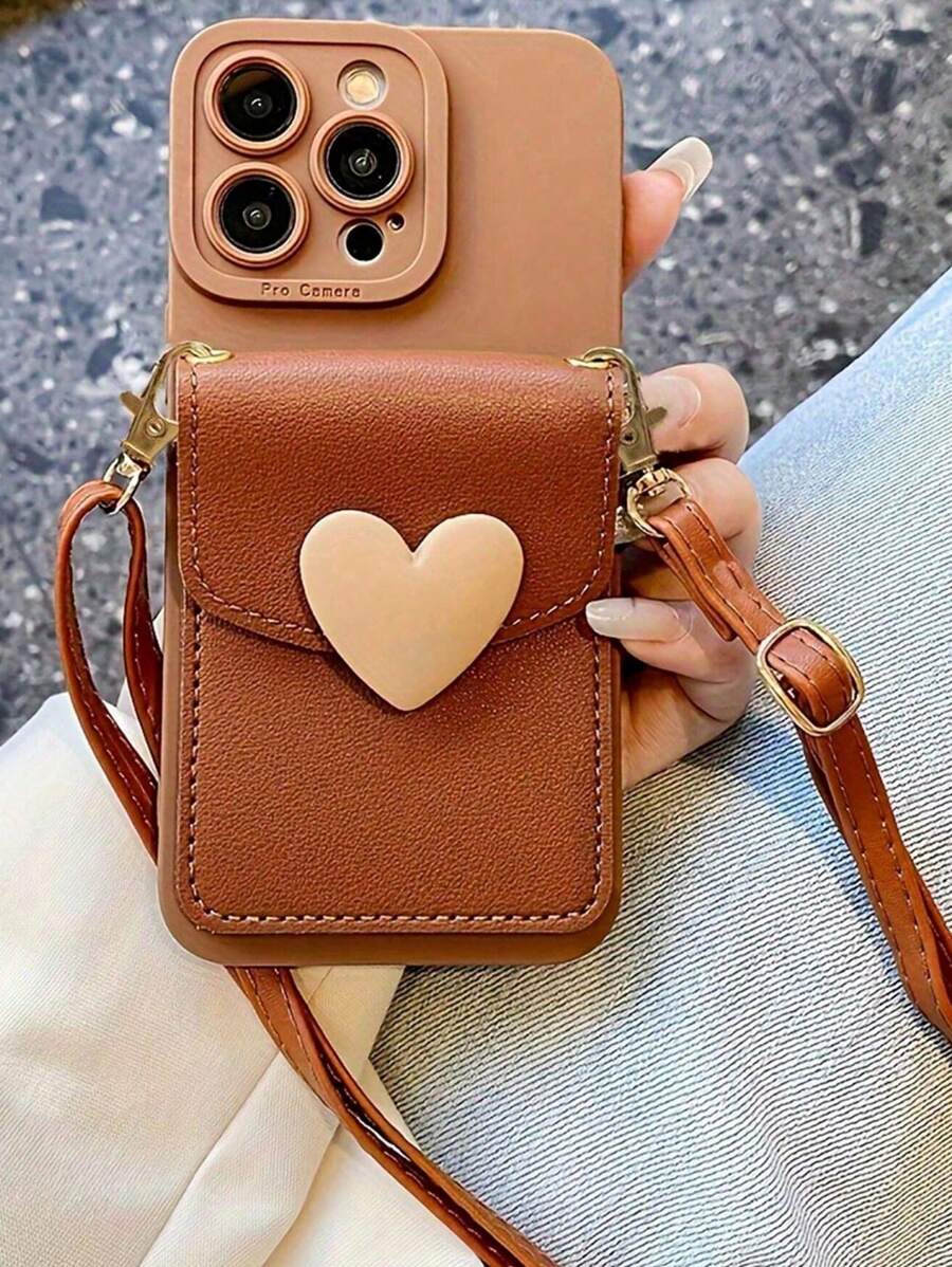 Valentines New Cute Crossbody Lanyard Necklace Strap Card Holder Silicone Phone Case Compatible With Iphone 16 15 14 11 12 13 Pro Max X XR 14 15 16 Plus 3D Heart Shockproof Bumper Cover Waterproof Anti-Fall Scratch Resistant