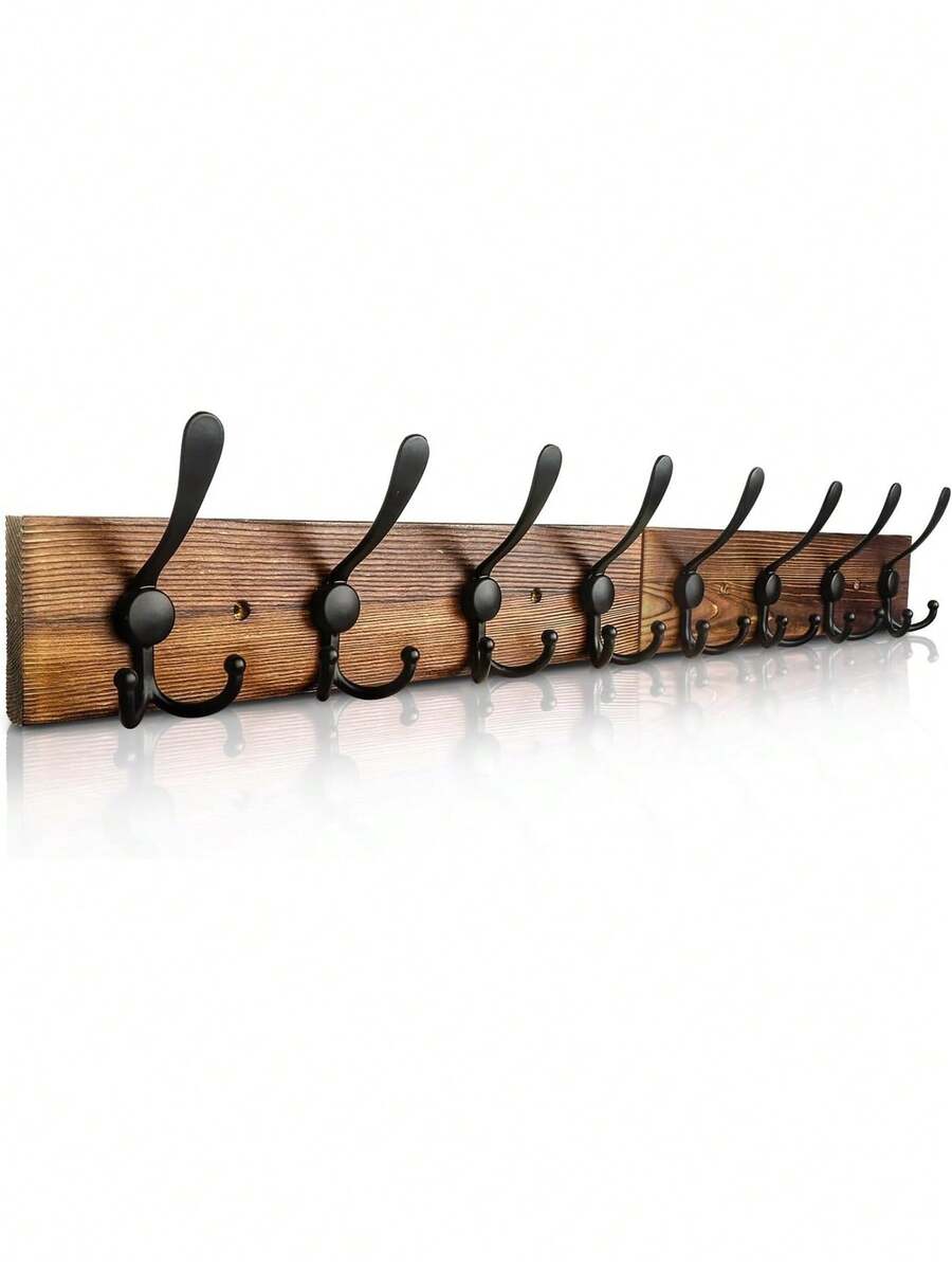 Wall Mounted Coat Hooks, Rustic Wall Mounted Coat Rack Hook For Hanging Coats, Towels, Hats, Jackets In Bathroom, Living Room - Brown Finish, Wooden Rack With 3 Hooks, 40cm