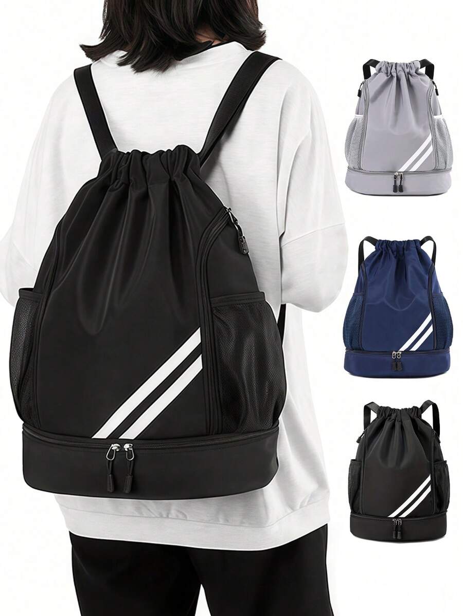 Waterproof Drawstring Backpack With Shoe Compartment Dry Wet Separation Design Sports Backpacks For Men And Women Large Capacity Dual-Strap Bag With Adjustable Shoulder Straps For Basketball Gym Yoga Fitness Outdoor Travel Essential Accessories School Stuff