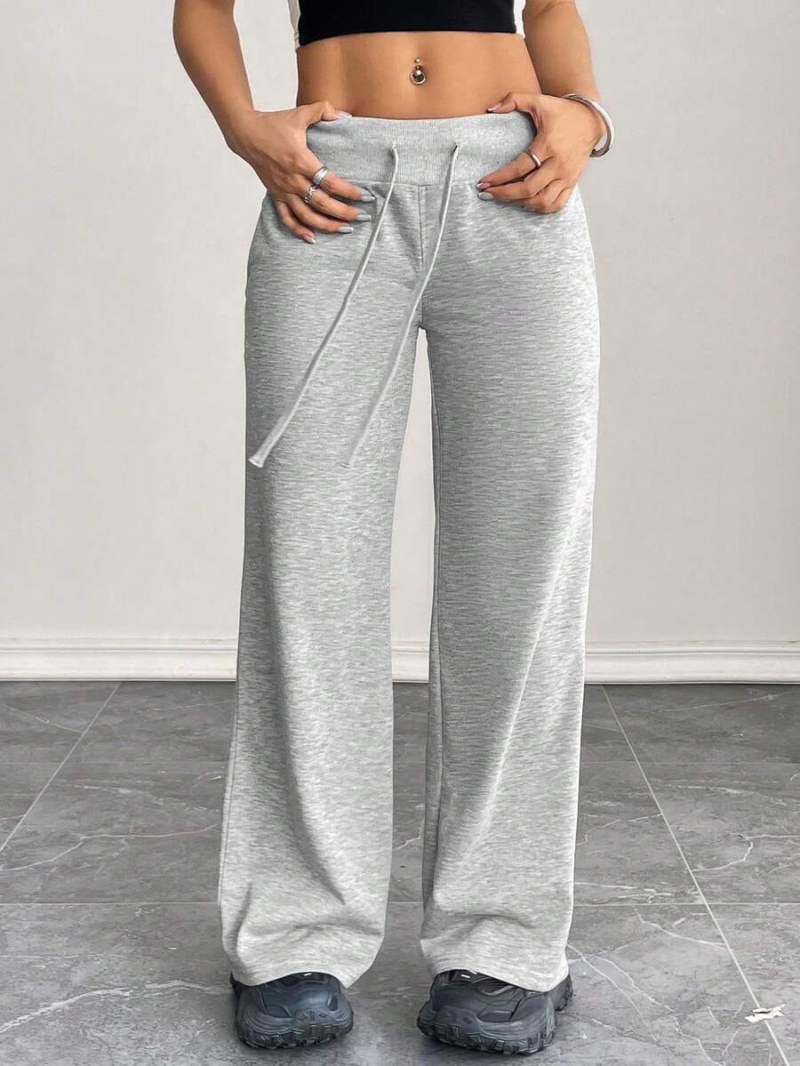 Women's Autumn Comfortable & Casual Solid-Knit Low-Rise Wide-Leg Long Sweatpants, Autumn & Winter Women's Pants