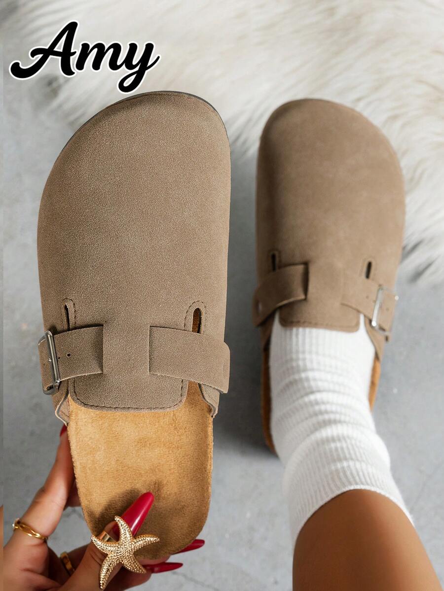 Women's Casual Solid Color Suede Slip-On Mule Slippers, Available In Thermal-Lined And Non-Thermal Versions