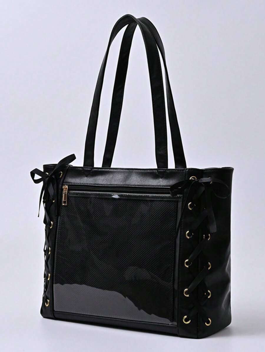 No Other Material,Book Tote Bag,Grommet Eyelet,Lace Up,Studded